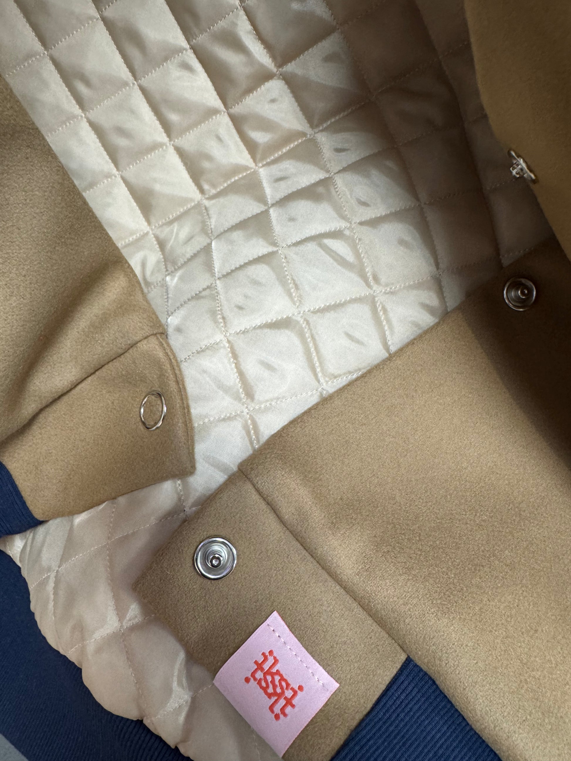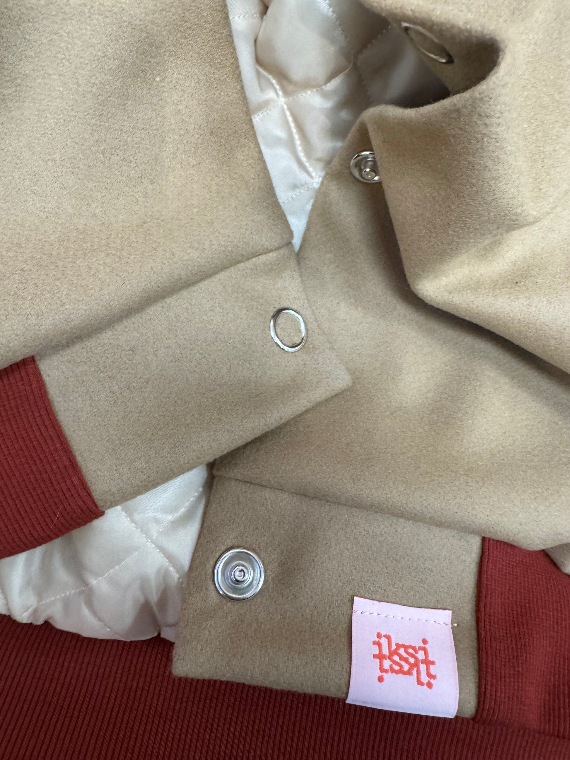 Leicht oversized. Die Ärmel sind weit gehalten. Die Jacke schließt an Hals, Ärmeln und unten mit Bündchen aus Biobaumwolle ab und ist komplett mit einem warmen Stepp aus Italien gefüttert.